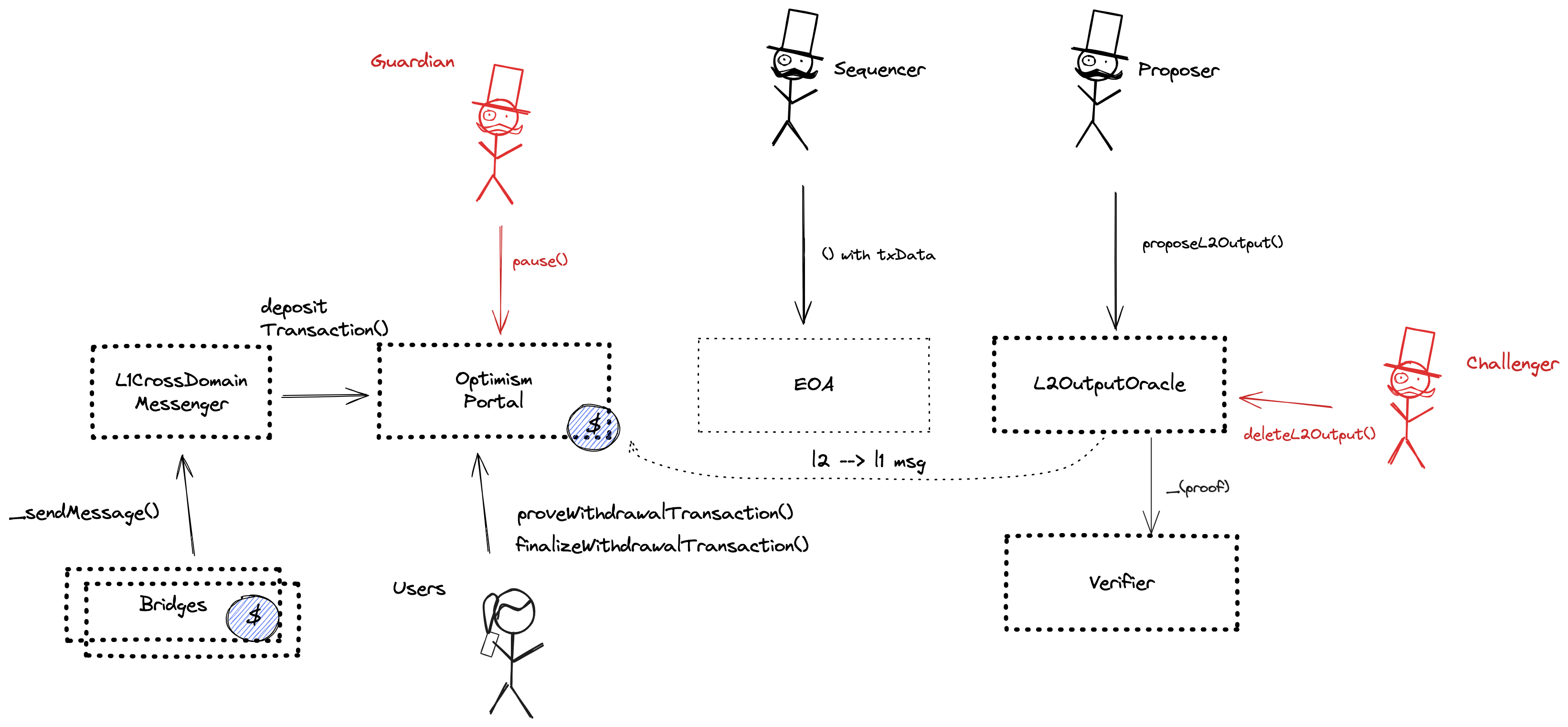 The main entry point to deposit funds from the host chain to this chain. It also allows to prove and finalize withdrawals. This fork of the standard OP stack contract allows for permissionless ‘escaping’ of assets with merkle proofs or a resolver if there were no state updates for a time defined by the L2OutputOracle.